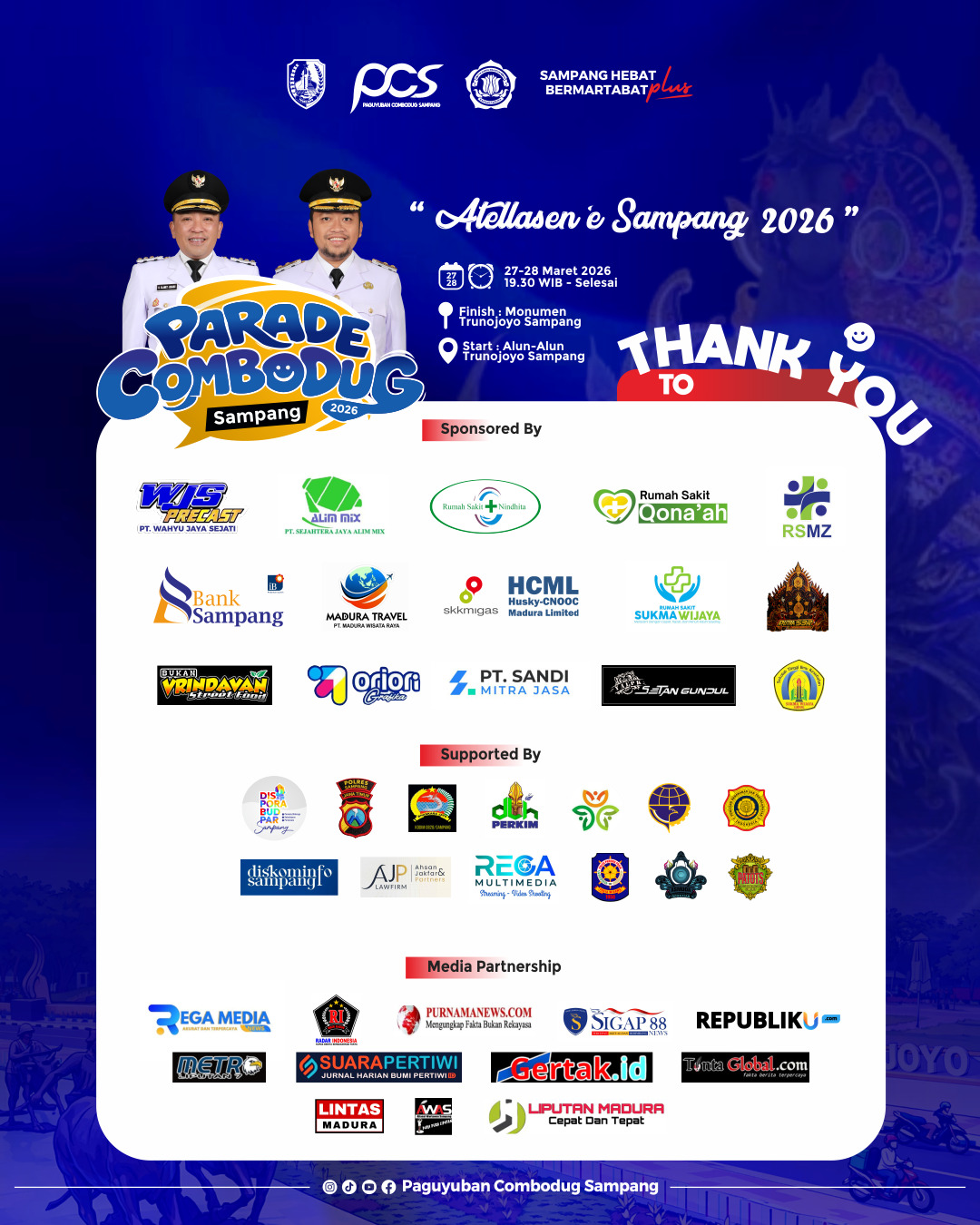 Pemerintah Daerah bersama Paguyuban Combodug setempat, resmi merilis daftar peserta dan jadwal pelaksanaan “Parade Combodug Sampang 2026”.
