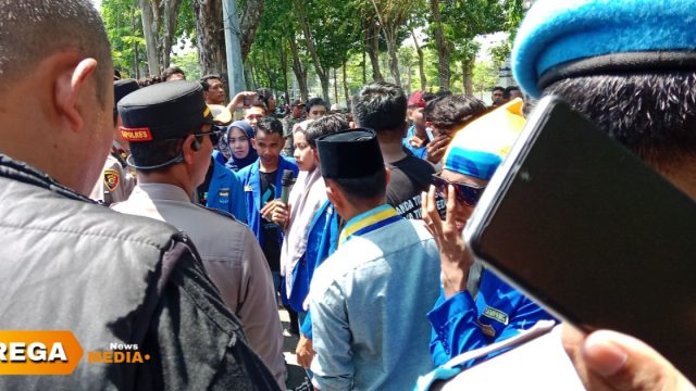 SAMPANG • Puluhan aktivis Pergerakan Mahasiswa Islam Indonesia (PMII) Sampang, aksi demo di depan Kantor DPRD setempat pada Selasa (21/4/2026).