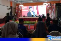 Caption: Ketua KPU Sampang (Aliyanto) menyampaikan sambutannya saat gelar penyampaian usulan pengesahan dan pengangkatan bupati-wabup terpilih, (dok. regamedianews).